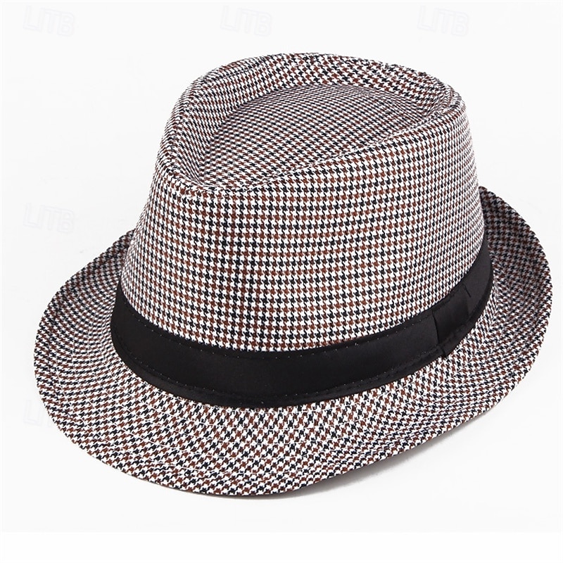 More information about Men's Kentucky Derby Hat Sun Hat Wild Brim Hat Top Hat Black Yellow Polyester Fashion Casual Street Daily Houndstooth Breathable