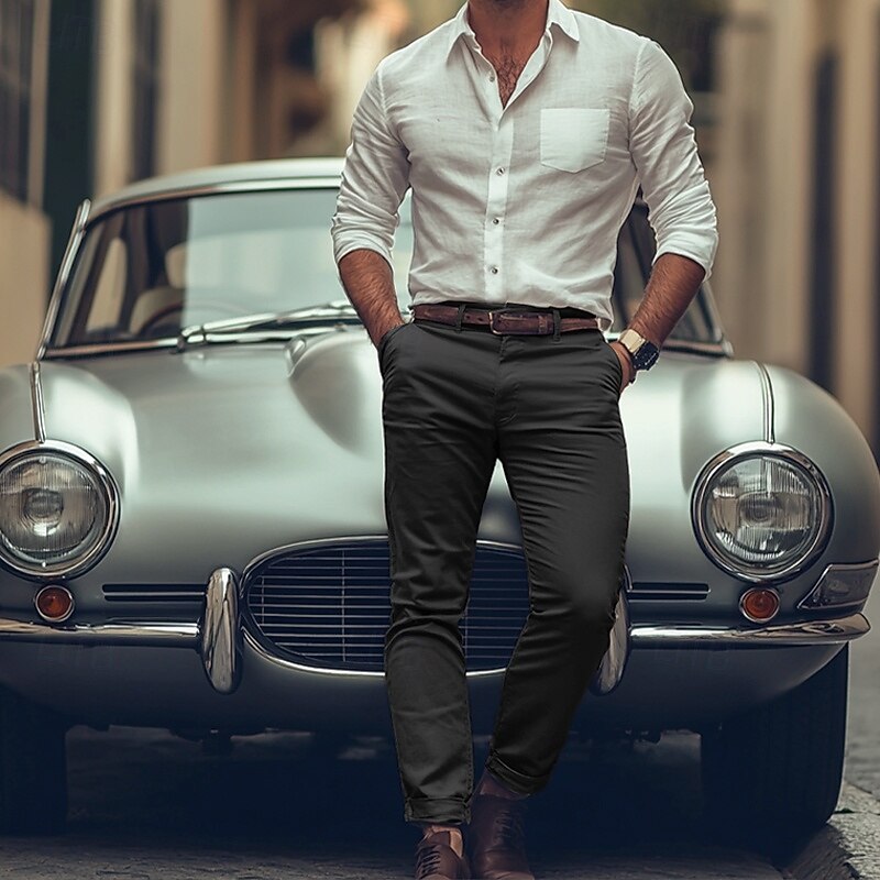 MXN $629 - Men's Trousers Chinos Chino Pants Casual Pants Buttons Front Pocket Plain Comfort Soft Business Daily Going out Fashion Streetwear Light Khaki Black Micro-elastic 2025. Shop for cheap Chinos online? Buy at lightinthebox.com on sale today!