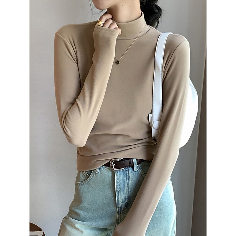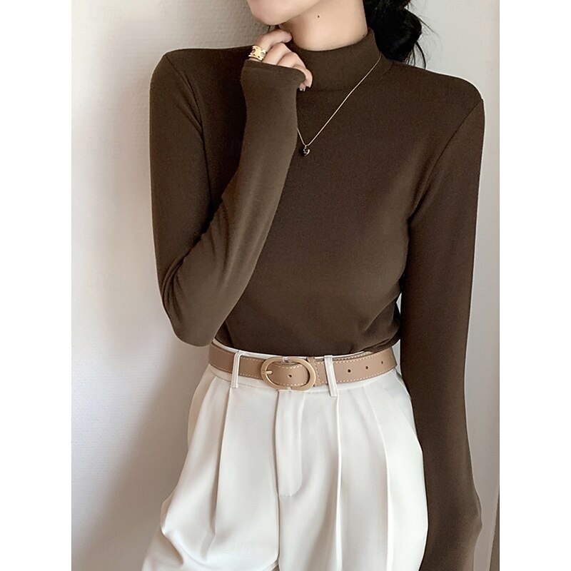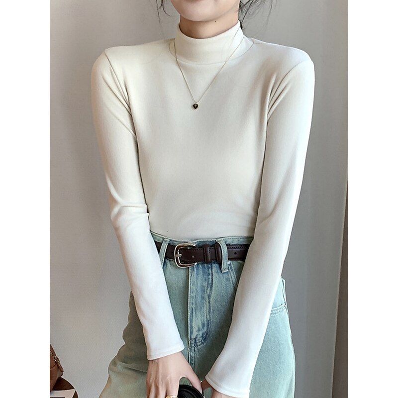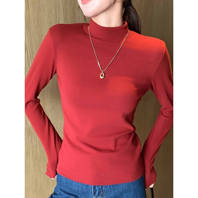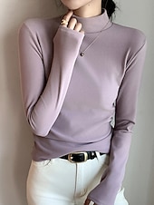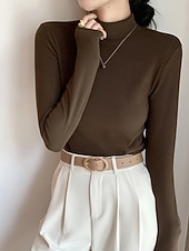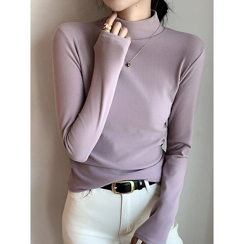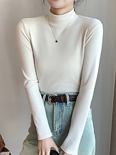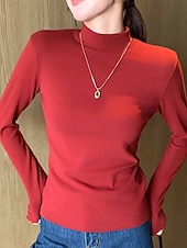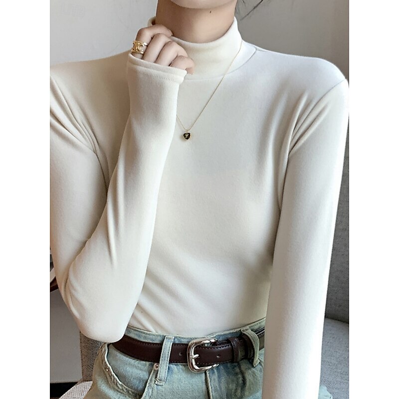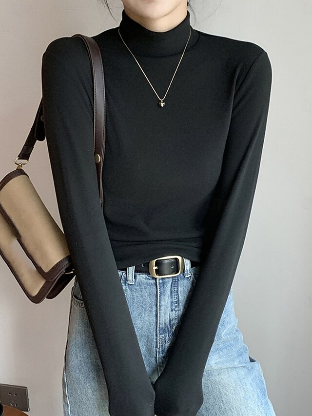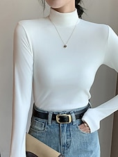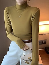 More information about Women's Blouse Solid Color Elegant Stylish Basic Long Sleeve Turtleneck Regular Tops Daily Black White Yellow Red Purple Fall Winter