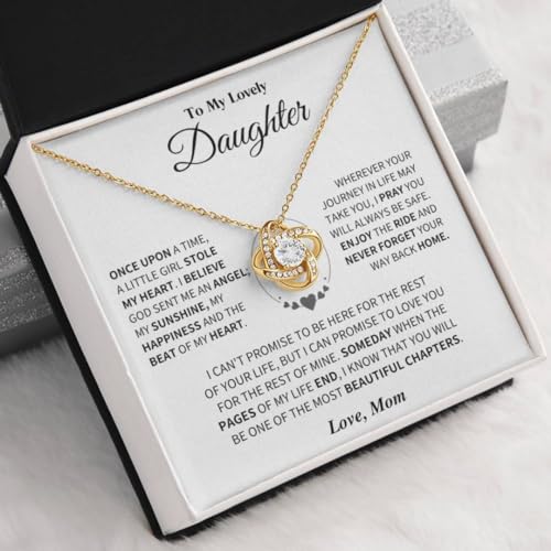 HOT ! To My Daughter Love Knot Necklace From Mom With Heartfelt Message, Jewelry Gifts For Daughter From Mom, Valentines Day, Graduation, Birthday, Christmas Gift From Mommy.
