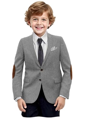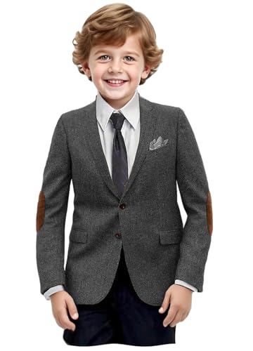 VENNYNG Boys Blazer Retro Herringbone Sport Coat with Elbow Path Formal Tweed Jacket for Kids Classic 5