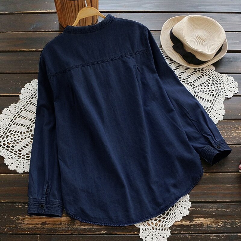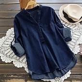 More information about Women's Shirt Blouse Plain Modern Casual Long Sleeve V Neck Regular Tops Daily Going out Pocket Navy Blue Light Blue Fall