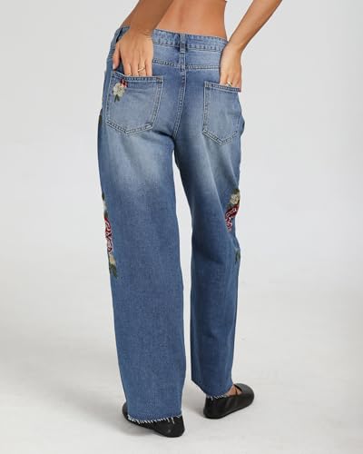 • Features: Smocked waistband for pull-on ease, embroidered rose detailing, drawstring detail, side pockets,summer lightweight barrel jeans,summer jeans for women 2025,women jeans pants