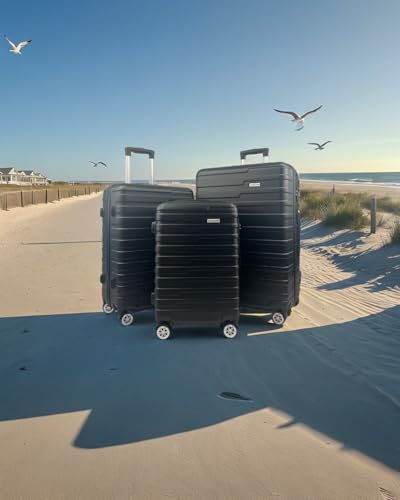 • LUGGAGE SET OF 3: Carry-on luggage, luggage sets with spinner wheels, hard shell suitcases, and carryon suitcase. Ideal for vacations, business trips, and travel bags for airplanes