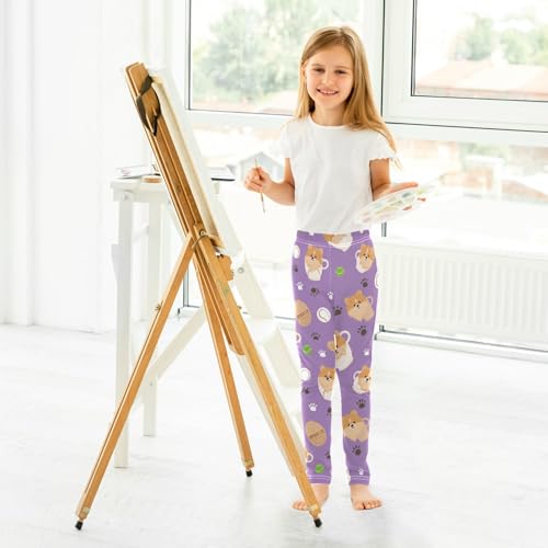 Boccsty Cute Little Pomeranian Dog Baseball Girls Leggings Kids Yoga Pants Dance Active Tights 4T 3
