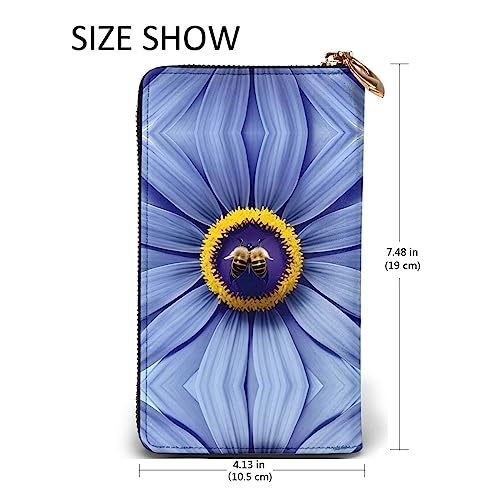 HOT ! Leather Wallet 7.48 x 4.13 in - Stylish and Durable Wallet for Women with Multiple Compartments and Zipper Design Flower heart bee Pattern