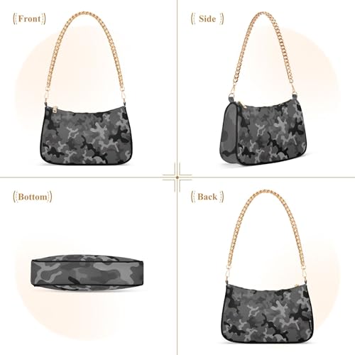 Abstract Camouflage Black Grey Clutch Handbags Womens Print Shoulder Purses Classic Formal Purse Hobo Zipper Closure Chain Strap 4