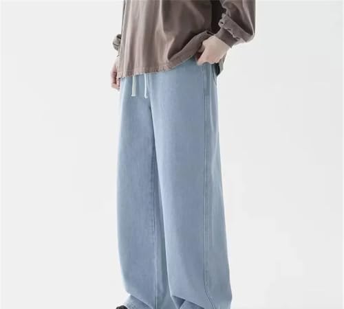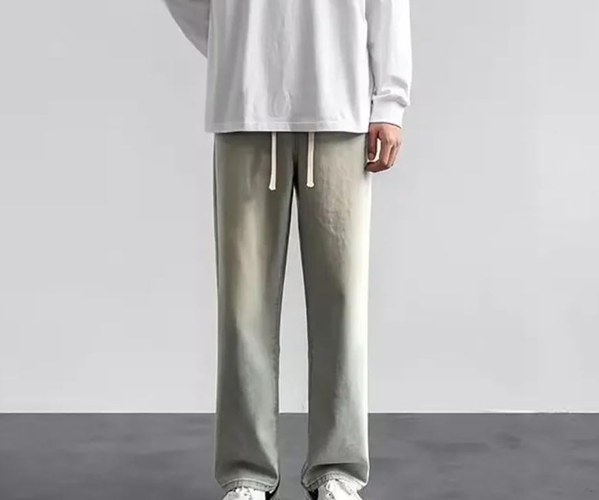 HOT ! Men’S Streetwear Loose Jeans Mid Waist Straight Leg Denim Pants Casual Drawstring Closure Jeans