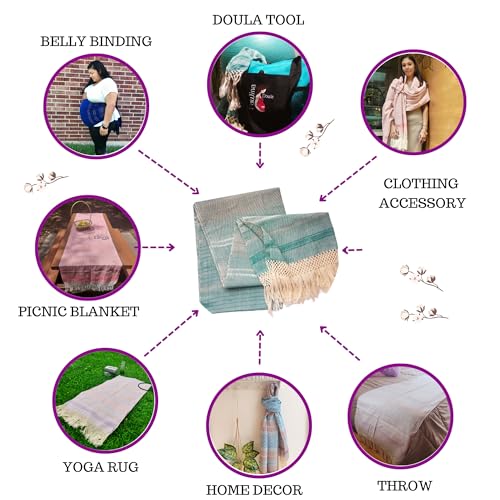 • Suitable for belly binding, doula tool (natural birth), clothing accessory (pashmina, shawl, pareo, blanket scarf), home decor (table runner, bed throw, tapestry, table cover ) yoga rug, prayer mat, meditation mat, picnic blanket, beach blanket, play mat