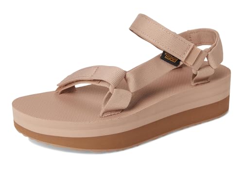 • Casual platform sandal featuring strappy upper with hook-and-loop closures at ankle and vamp