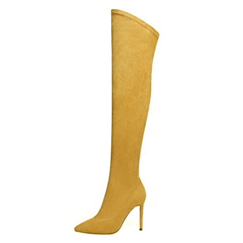 Zamikoo Women's Over The Knee Boots, Thigh High Boots Pointed Toe Stiletto High Heels, Sexy Stretch Fashion Tall Boots Side Zipper with Fur 4 Inch 5