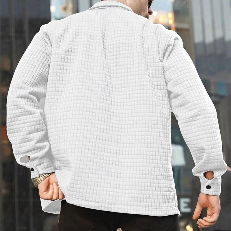 Men's Waffle Shirt Shirt Jacket Winter Jacket Plain Vacation Daily Wear Black White Khaki Gray Long Sleeve Lapel Fall Winter Clothing Apparel Pocket 1