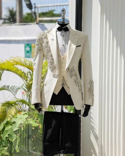 More information about 3 Pieces Men's Tuxedo Slim Groom Wedding Suits Luxury Rhinestones One Button Blazer Vest Pants Set for Prom,Party