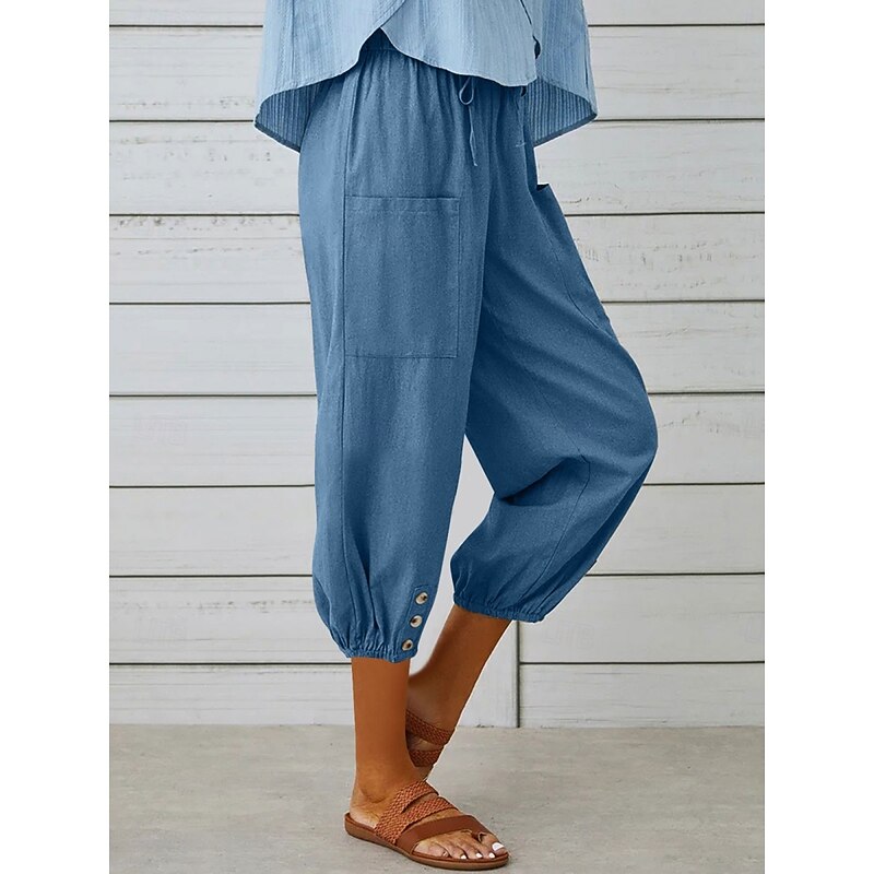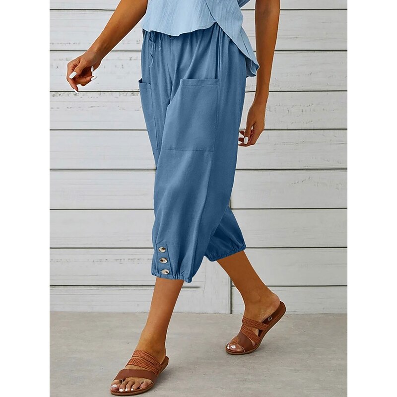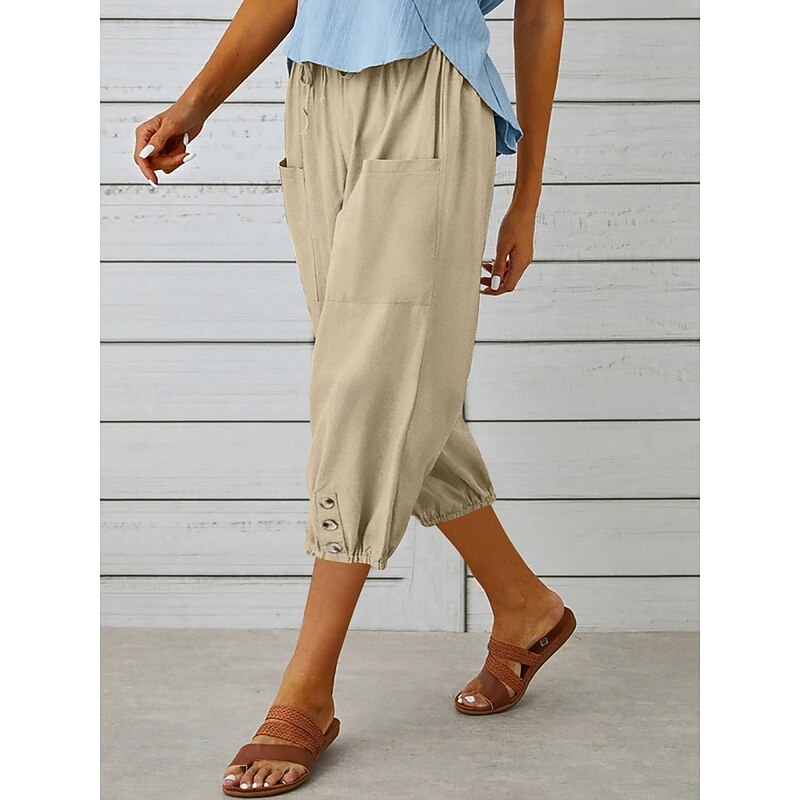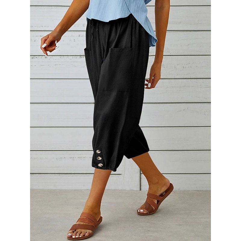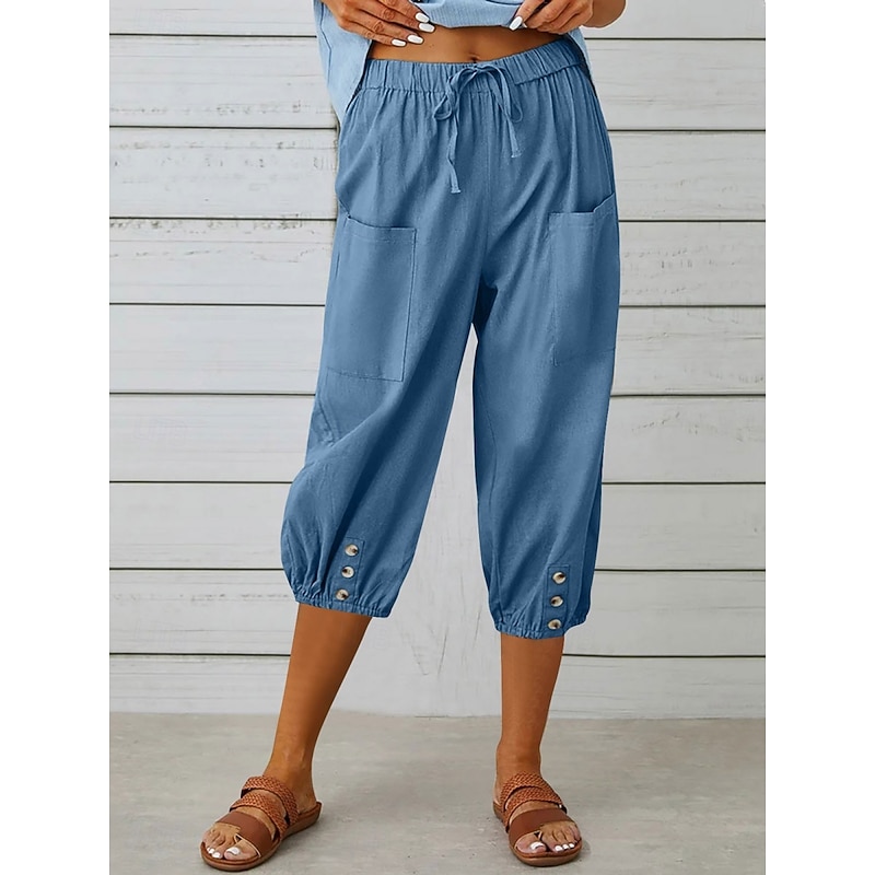 More information about Women's Capri Pants Solid Color Chinos Fashion Ethnic Style Basic Calf-Length High Waist Plain Pocket Drawstring Comfort Outdoor Micro-elastic Vacation Street Daily Black White Khaki Light Blue