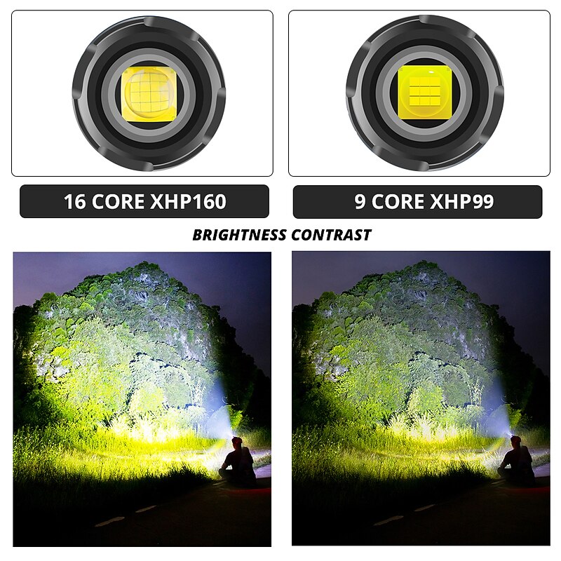LED Flashlight Outdoor Super Bright XHP160 Powerful XHP99 Waterproof Torch USB Rechargeable 18650 Lantern Portable Zoom Camping Light 16