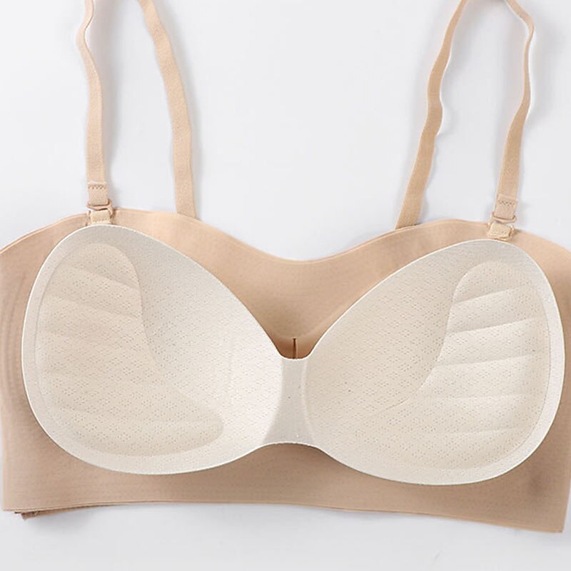 Highlights [Fabric] : Crafted from high-quality nylon, this bra offers a lightweight, breathable feel for ultimate comfort throughout the day. The material ensures a smooth, seamless fit under clothing, perfect for everyday wear. [Design] : This bandeau-style wireless bra features a padded design with a 3/4 cup to enhance your natural shape, providing gentle push-up support. It boasts a convenient front hook-and-eye closure for easy wear and a V-neckline that adds a feminine touch. The strapless design makes it an ideal choice for outfits requiring an invisible look. [Design Highlights] : The minimalist silhouette of this strapless bra ensures a natural-looking support while maintaining a clean, sleek appearance under clothing. The adjustable features allow for a personalized fit, maximizing comfort and support for various occasions. [Occasions] : Perfect for a range of settings, from everyday casual wear to special occasions like dates or Valentine's Day. Whether you're dressing up for a romantic evening or simply seeking comfort on a daily basis, this bra is designed to meet your needs. [Sizes] : Available in a range of sizes from S to XL, accommodating different body types and ensuring a perfect fit for all. Choose from versatile color options like white, black, and khaki to match your personal style and outfit requirements.