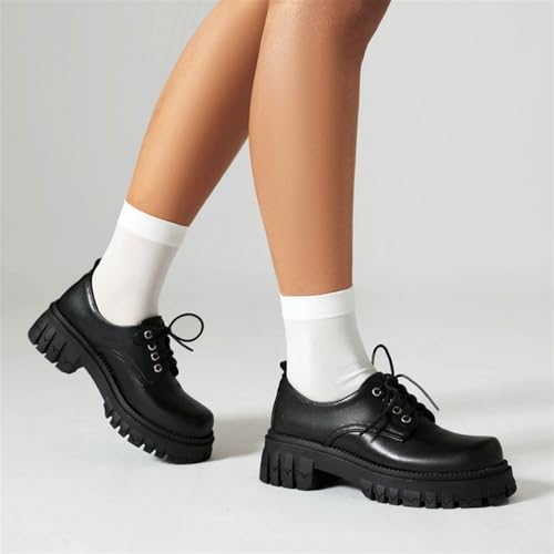• [Classic Design] :--The shoes is round-toe design. Smooth upper make this platform loafer uniquely attractive, designed for your steady pace. with adjustable lace-up closure