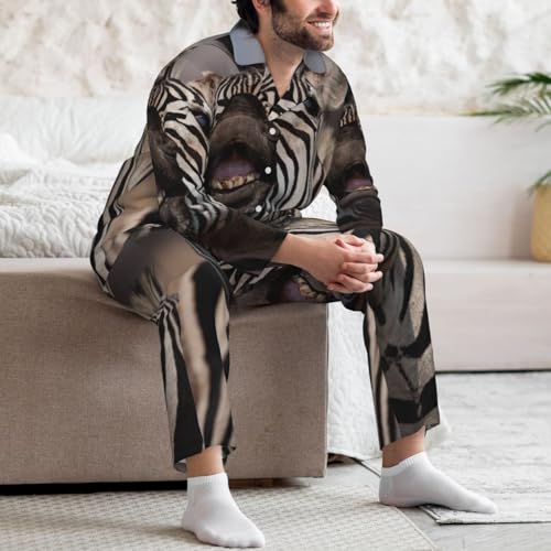 Portrait Of Zebra Smile And Teeth Mens Pajamas Set Button Down Sleepwear Set Long Sleeve Loungewear With Pockets 3