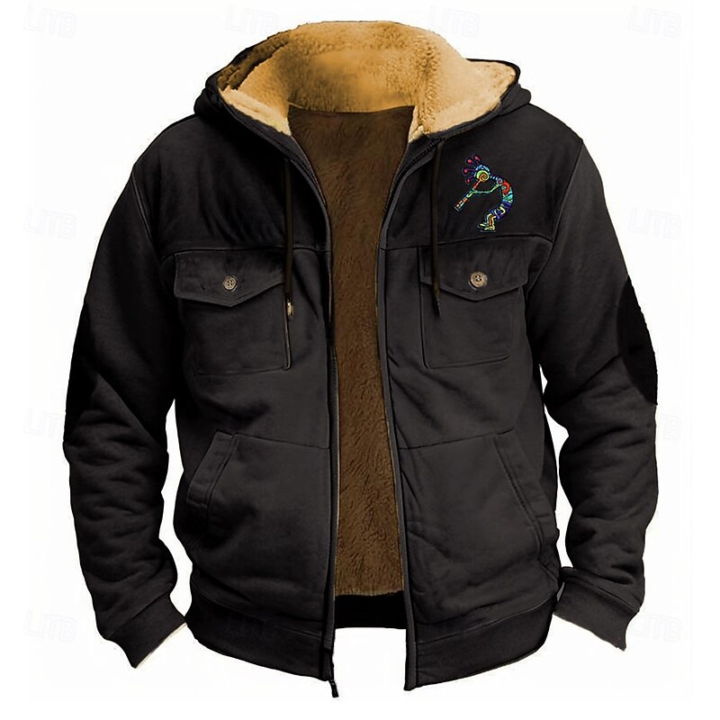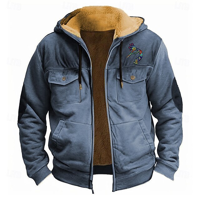 More information about Men's Bandana Print Fleece Hoodie Hoodies Bohemia Fashion Long Sleeve Hooded Holiday Streetwear Black Red Zipper Pocket Fall Winter Designer