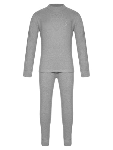 Kids Boys Girls Thermal Underwear Set Winter Warm Long Sleeve Base Layer Tops And Bottoms Sets Gray 3-4 Years 5