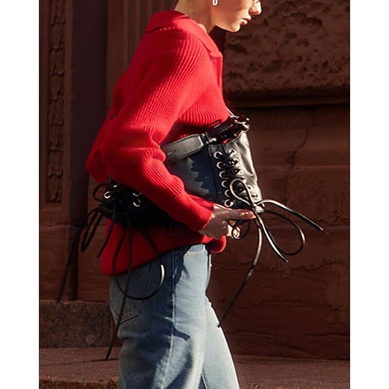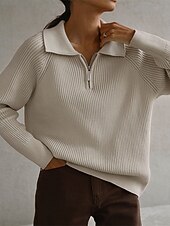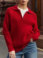 More information about Women's Sweater Pullover Daily Stylish Casual Solid Color Ribbed Shirt Collar Zipper Knitted Long Sleeve Regular Tops Knit Daily Holiday Going out Pink Red Fall Winter
