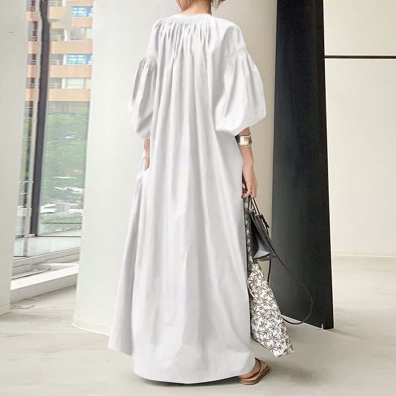 Women's Long Dress Maxi Dress Linen-Inspired Dresses Casual Dress Stylish Casual Vacation Daily Date Regular Fit Plain Long Sleeve Square Neck Black White Khaki Summer Spring 12