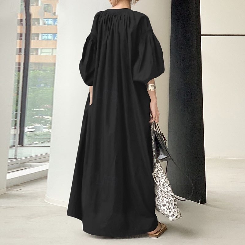 Women's Long Dress Maxi Dress Linen-Inspired Dresses Casual Dress Stylish Casual Vacation Daily Date Regular Fit Plain Long Sleeve Square Neck Black White Khaki Summer Spring 11