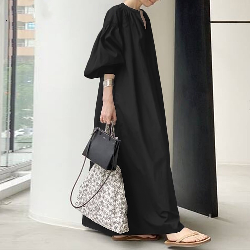 More information about Women's Long Dress Maxi Dress Linen-Inspired Dresses Casual Dress Stylish Casual Vacation Daily Date Regular Fit Plain Long Sleeve Square Neck Black White Khaki Summer Spring