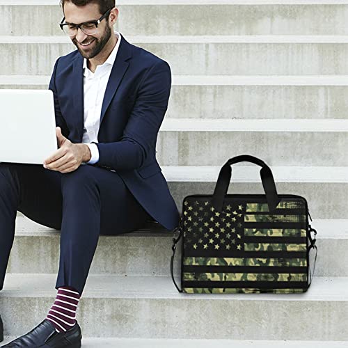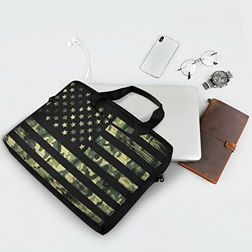 HOT ! Usa American Flag Camo Laptop Sleeve Case 14 15.6 16 inch Computer Bag Men Women Briefcase Shoulder Strap Laptop Bag Messenger Notebook with Handle Boys Girls