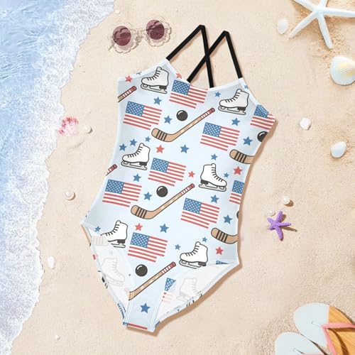 Girls Swimsuit Skates Flag Pattern One Piece Swimwear 6