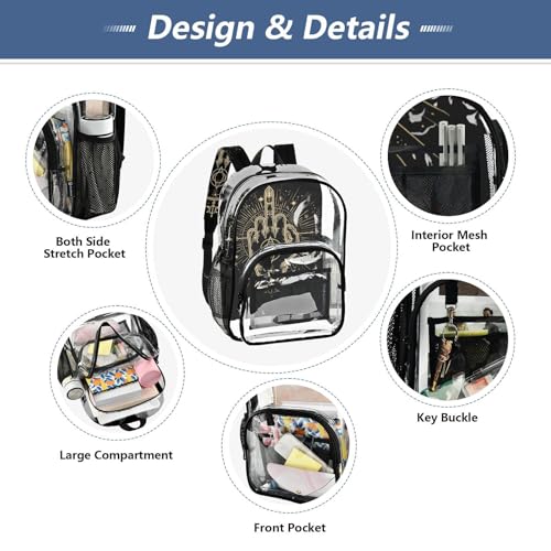• Material: Combining 290D twill polyester and transparent PVC, this backpack offers durability and style. The PVC front panel is water-resistant and clear for easy item visibility