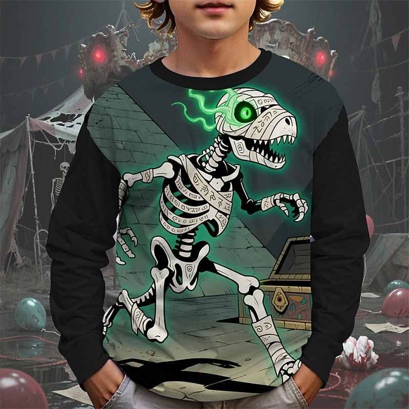 Halloween Boys' 3D Cartoon Skull Ghost T shirt Tee Long Sleeve Spring Fall Fashion Basic Kids 4-12 Years Crew Neck Outdoor Casual Daily Regular Fit 5