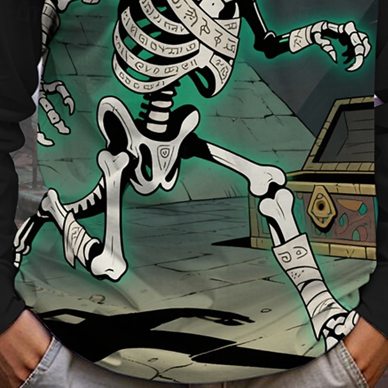 Halloween Boys' 3D Cartoon Skull Ghost T shirt Tee Long Sleeve Spring Fall Fashion Basic Kids 4-12 Years Crew Neck Outdoor Casual Daily Regular Fit 7
