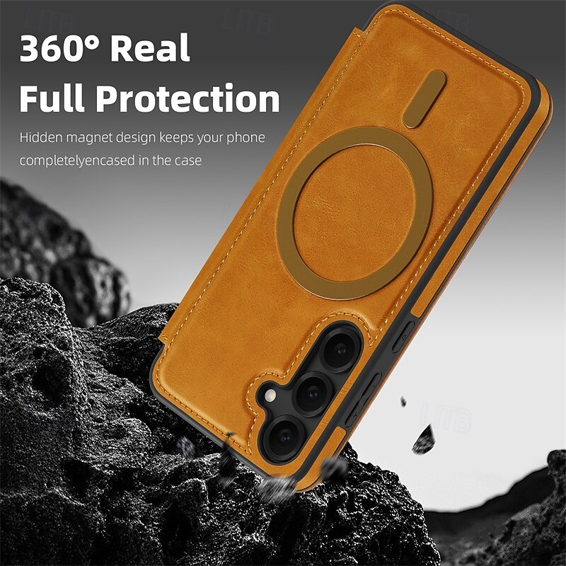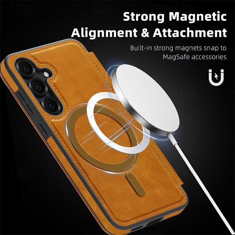 More information about Phone Case For Samsung Galaxy S25 S25 Edge S24 S24 FE S23 Ultra Plus S22 Magnetic Adsorption Flip Cover Support Wireless Charging Card Slot Shockproof TPU PC PU Leather