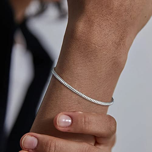 • STERLING SILVER CLASP BRACELET FOR WOMEN - Solid 925 sterling silver clasp, 3mm silver round snake chain bracelet, Italian craftsmanship gives this classic silver chain bracelet the most fashionable feel, this classic style silver bracelets for women is a perfect jewelry to get a fashion look. This silver bracelet can wear simply or layering with other bracelet or wrist jewelry will also get a popular trends. Perfect round snake chain bracelet for women jewelry collection.