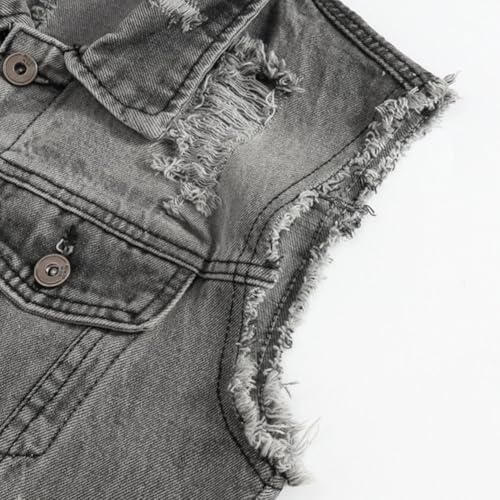 Denim Vest Men Ripped Distressed Destroyed Washed Western Sleeveless Button Down Jean Vest 5