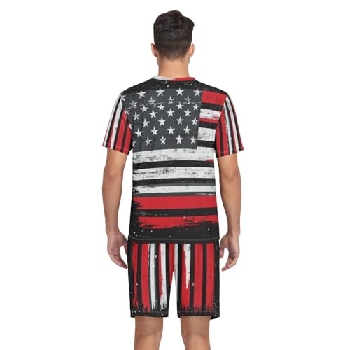 American Flag Men’s Pajama Sets Short Sleeve Lounge Wear with Elastic Waistband and Drawstring 1
