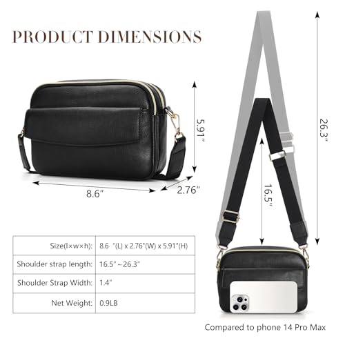 • Ideal Size: Womens crossbody purse, Adjustable shoulder strap (34 inches - 53 inches), Can be worn crossbody or over one shoulder for a variety of looks, size: 8.6”(L)X 2.76"(W) X 5.91"(H), Can hold everyday essentials.