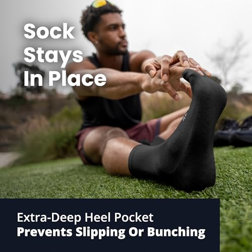 • Secure Fit: Designed with a deep heel pocket to ensure the socks remain securely in place, preventing slippage inside the shoe and protecting the Achilles from blisters.
