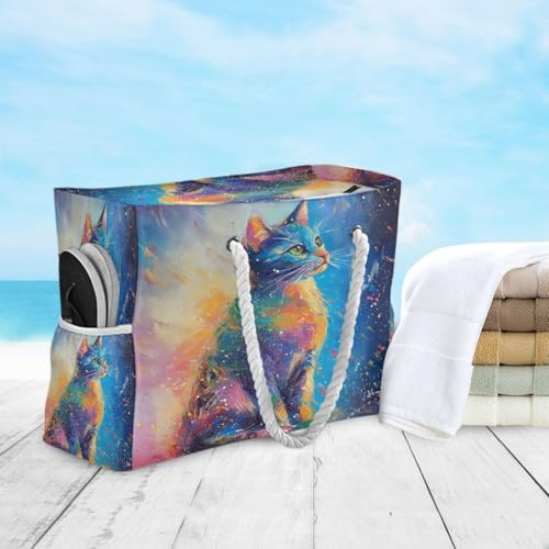Large Beach Bags Totes Canvas Tote Shoulder Bag Colorful Cats Water Resistant Bags for Gym Travel Daily 3