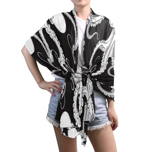 ALAZA Funny White Kraken Chiffon Silk Long Scarf Shawl Wrap 4