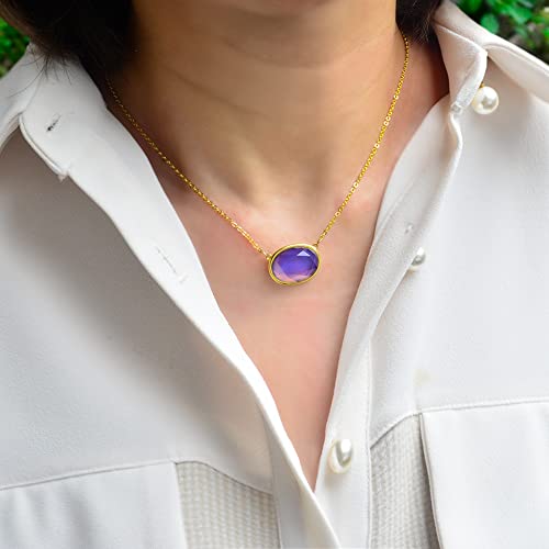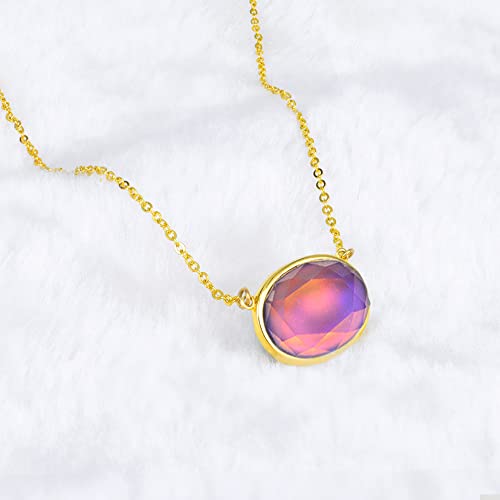 18K Gold Plated Color Changing Oval Mood Stone Pendant Mood Necklace, Facet Cut Crystal, 18” Chain, Gifts for Women 5