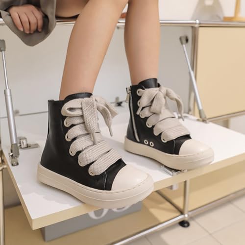 Boys Girls High Top Sneakers PU Leather Lace Up Platform Walking Shoes with Zipper 6