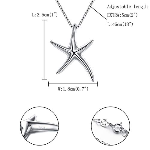 FANZE 925 Sterling Silver Starfish Lucky Sea Star Pendant Necklacse for Women Beach Jewelry Gift for Chrismas Thanksgiving Wedding Valentines Mother's Day 6