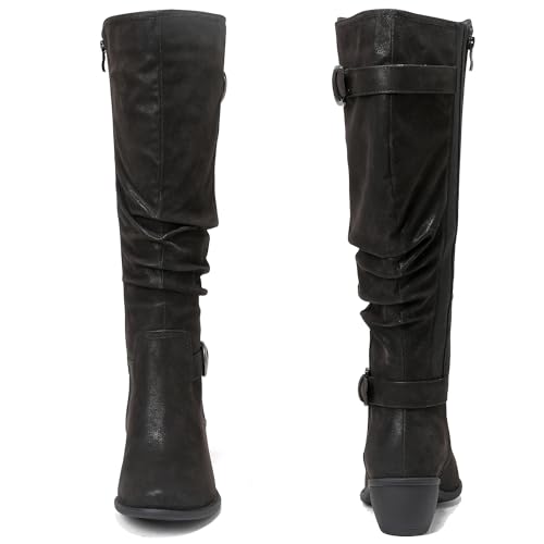 Luoika Women's Extra Wide Calf Knee High Boots, Wide Width Slouchy Knee-High Boots Low Stacked Heel Winter Fall Plus Size Boots. 5