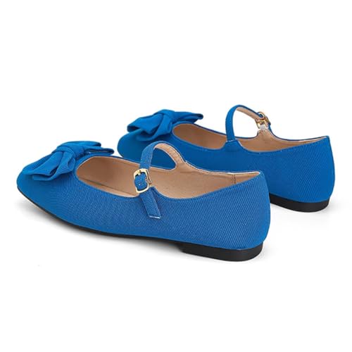 Dear Time Women's Bowknot Mary Jane Flats Dressy Ballet Flats Square Toe Shoes with Ankle Strap 6