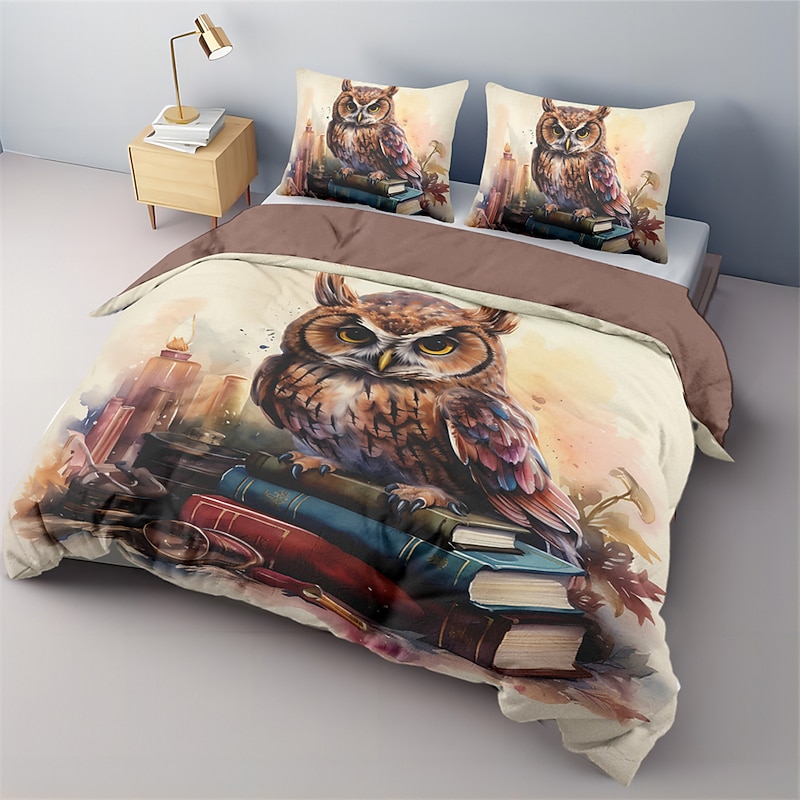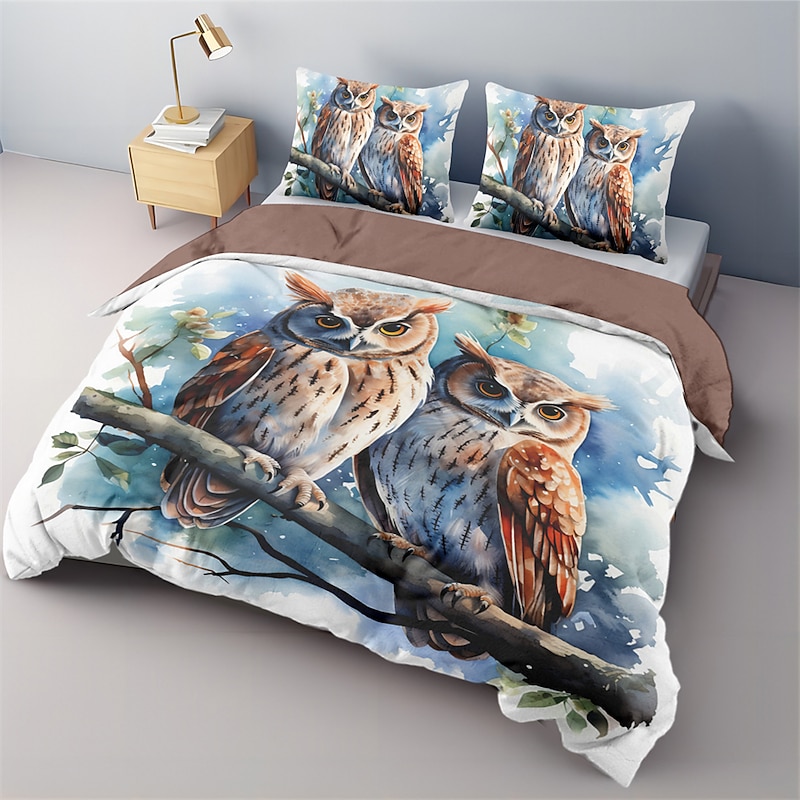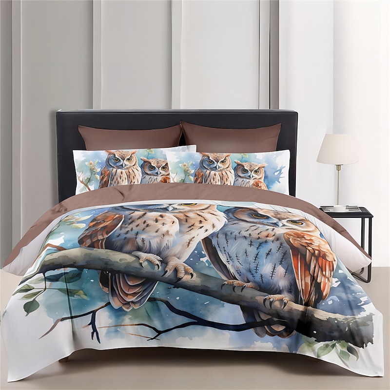 Owl Pattern Duvet Cover Set Bed Bed Set 2-Piece Set 3-Piece Lightweight Soft Short Plush Set Cotton Bedding Set Ultra Soft Comforter Set King Queen Duvet Cover 9
