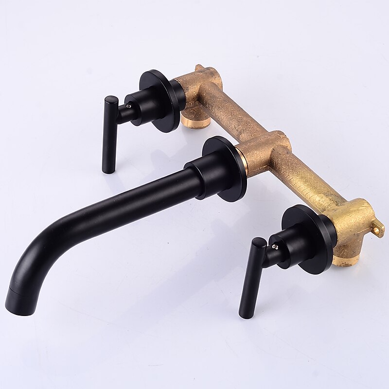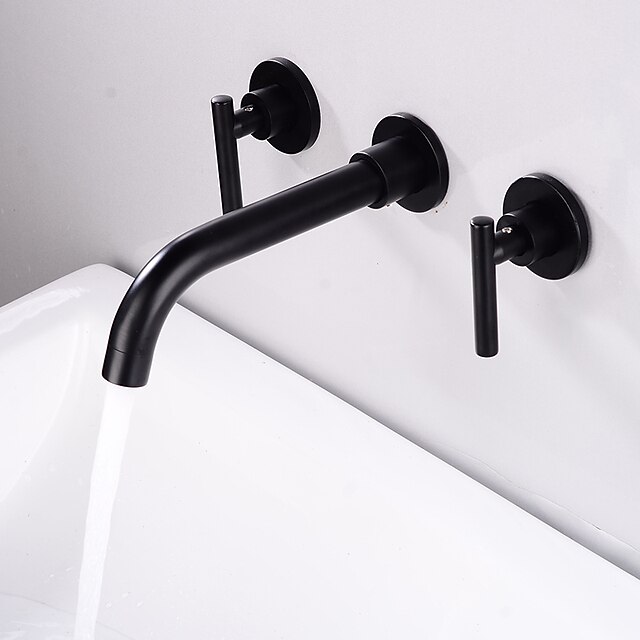 Bathroom Sink Mixer Faucet Wall Mounted, 2 Handle 3 Hole Wash Baxin Brass Taps, Rough in Valve Washroom Basin Tap 12