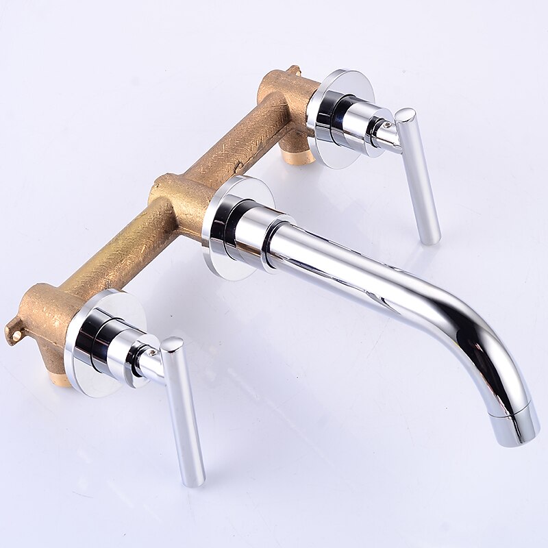 HOT ! Bathroom Sink Mixer Faucet Wall Mounted, 2 Handle 3 Hole Wash Baxin Brass Taps, Rough in Valve Washroom Basin Tap