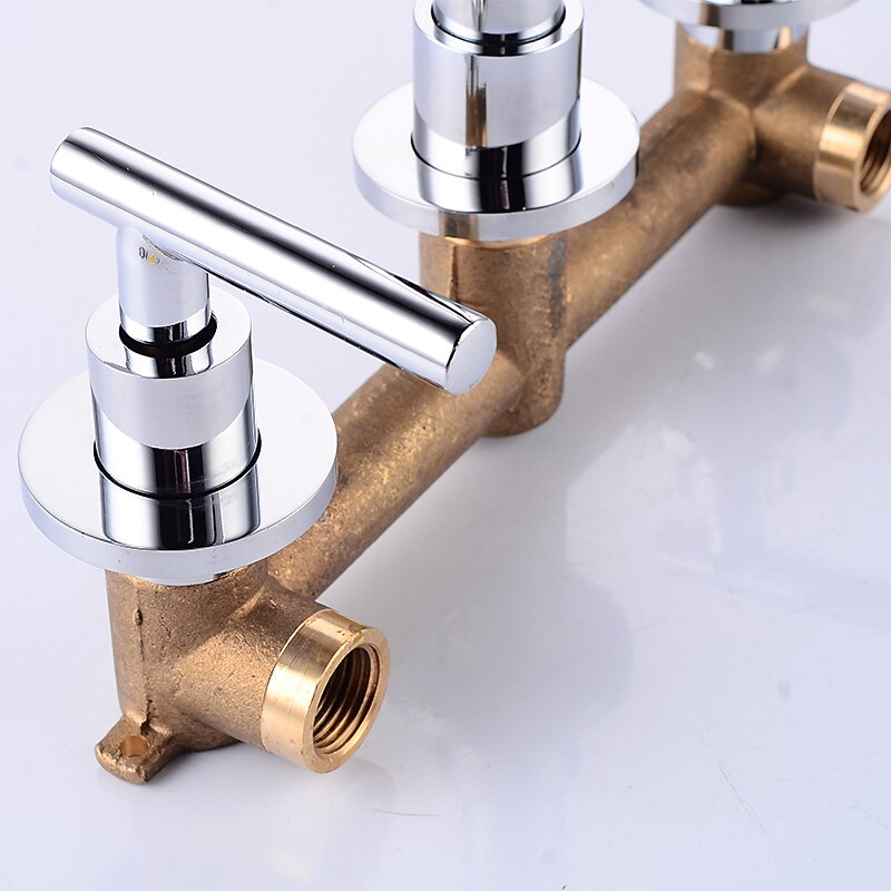 More information about Bathroom Sink Mixer Faucet Wall Mounted, 2 Handle 3 Hole Wash Baxin Brass Taps, Rough in Valve Washroom Basin Tap